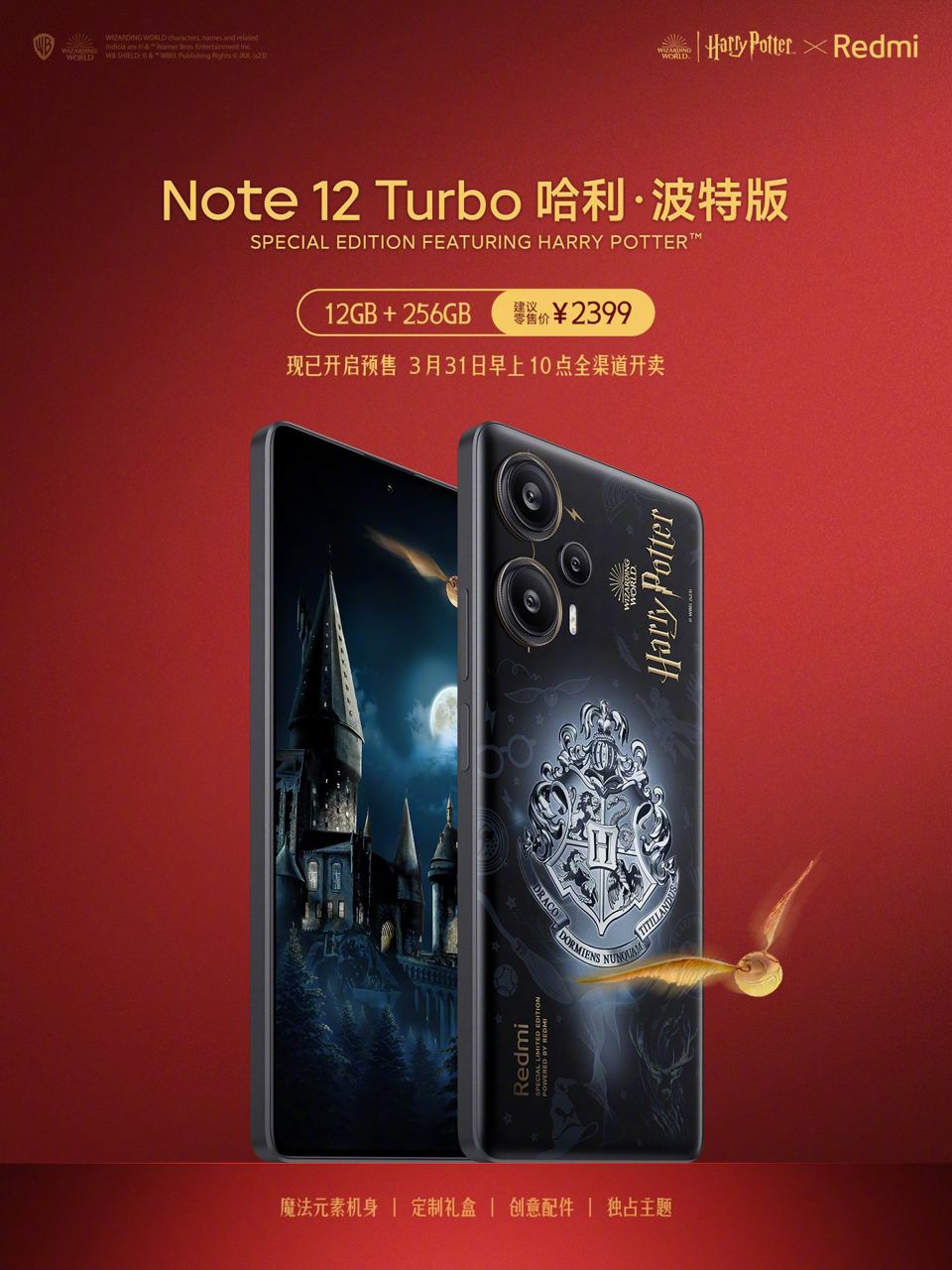 Также вышла лимитированная версия Harry Potter Edition. У комплект с тематическими чехлом, скрепкой, наклейками и приглашением в Хогвартс. Цена — ¥2399 юаней (27 000 рублей) с 12-256 ГБ памяти. Бонусом можно купить наушники Redmi Buds 4 в таком же стиле.